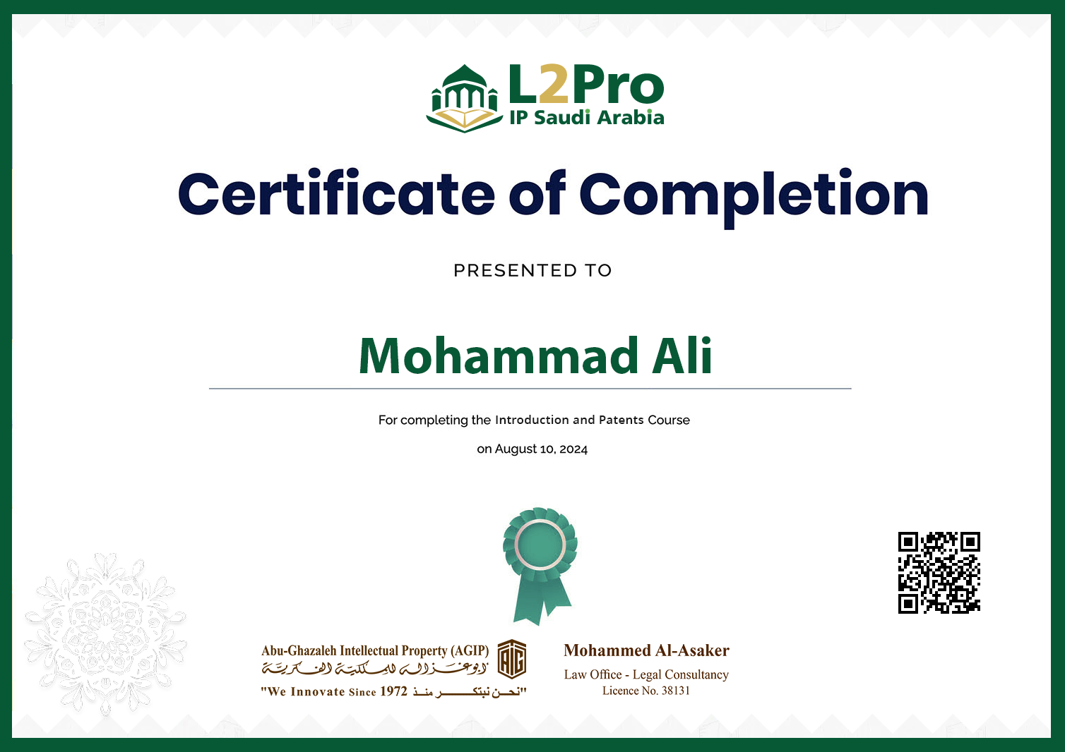 Sign up to L2Pro Saudi ArabiaL2Pro Saudi Arabia will increase awareness and aid in a better understanding of the IP domain. You will learn how to